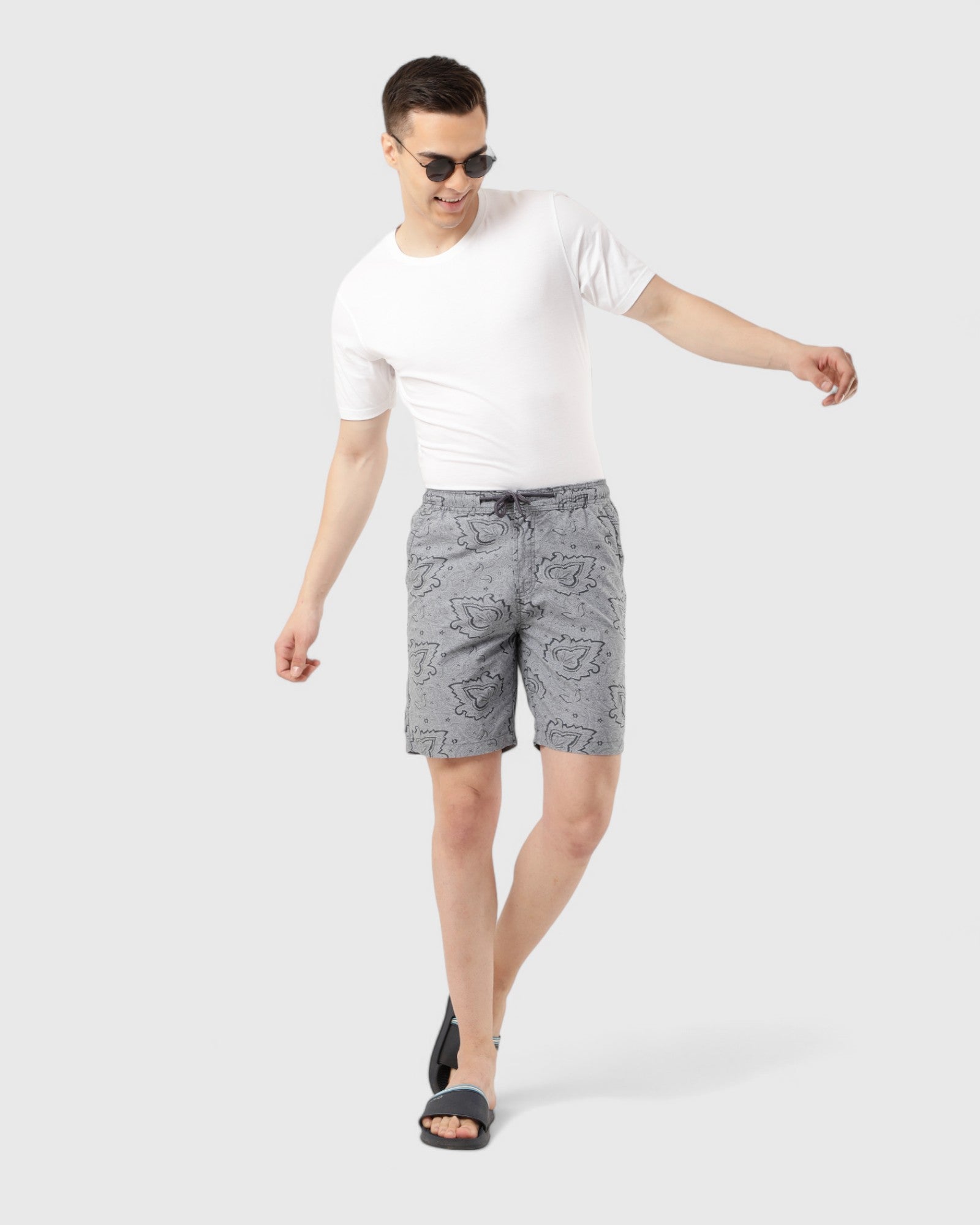 Printed Light Grey Comfort Shorts